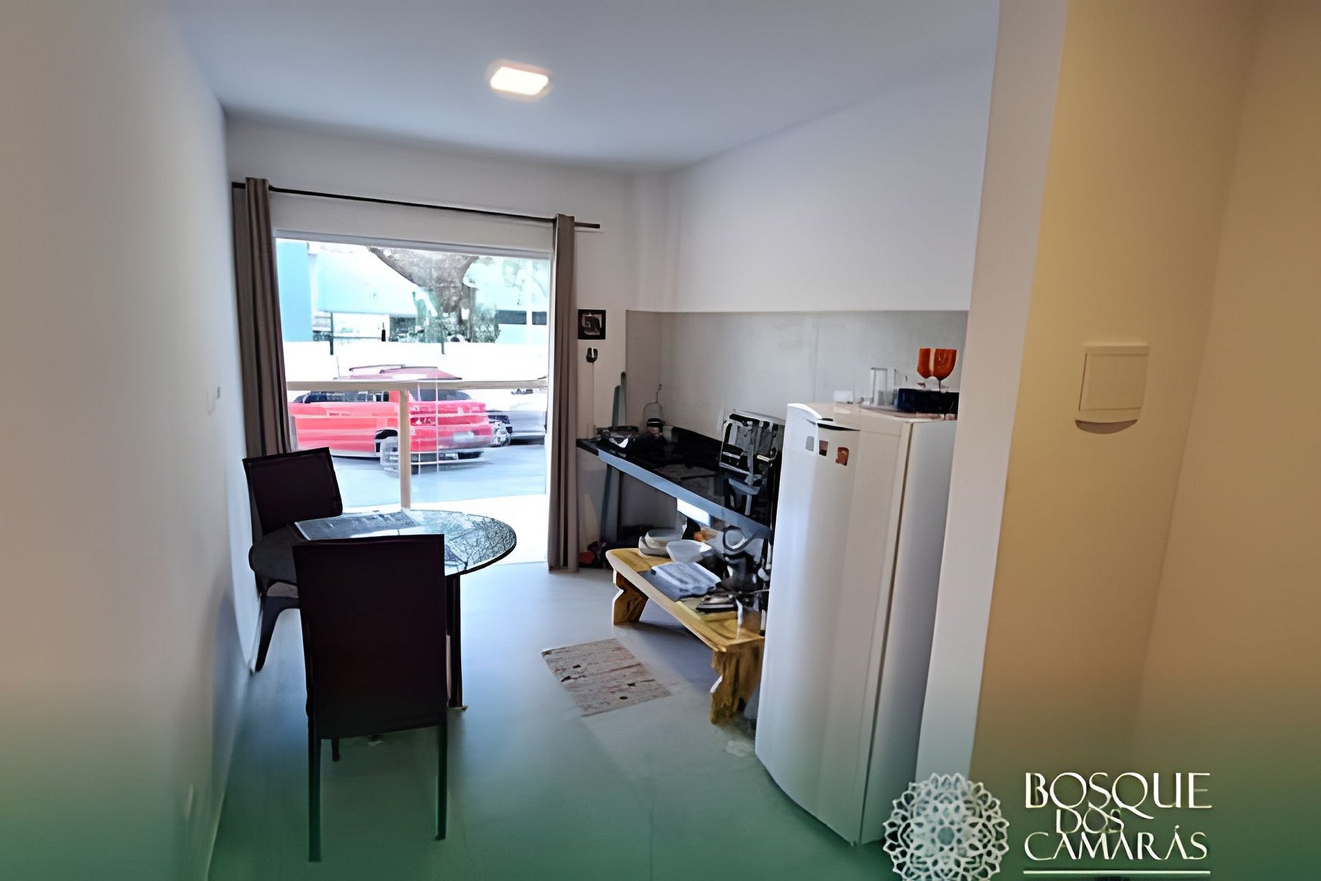 Apartamento 002 do Condomínio Bosque dos Camarás em Aldeia PE. Excelente Localização no Km.3 da estrada de Aldeia. 200 metros da PE-27 Apartamento com Sala, Cozinha Americana, 1 quarto, 1 Wc social, 1 Varanda grande, com uma vaga de Garagem.